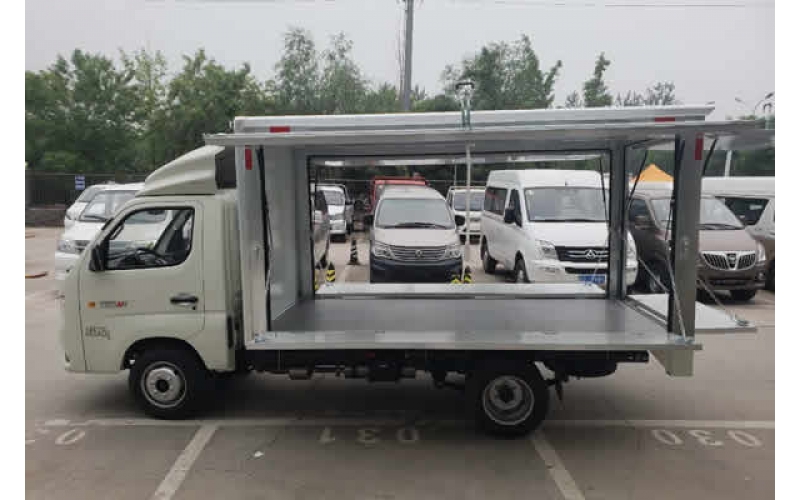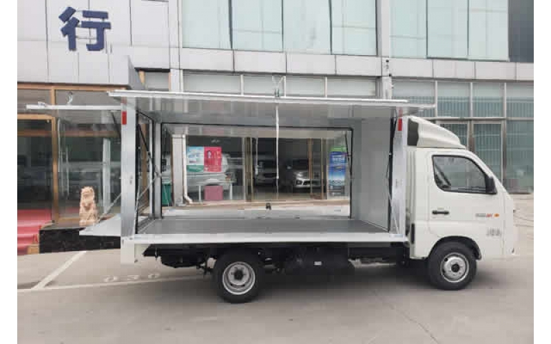 祥菱翼展地?cái)傑嚭竺鎿醢迨掌饋頃r(shí)候外觀和普通的貨車相比沒有太多的區(qū)別。但是可折疊的門板里面暗藏玄機(jī)。